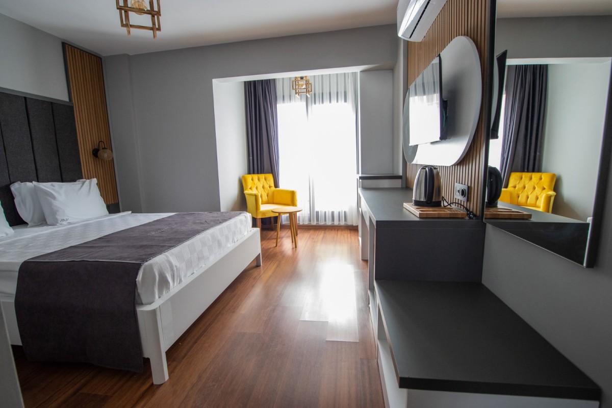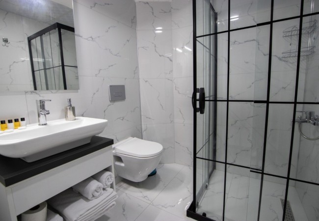 | Eşyalar: | Duşakabin Saç Kurutma Makinesi Şampuan Havlular TV Dolaplar |